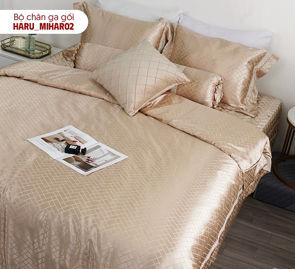 - Cotton lụa: bề mặt mịn, nhẹ, mang lại cảm giác êm ái và dễ chịu khi nằm