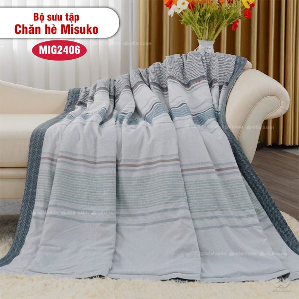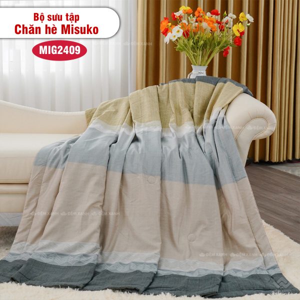 - Chăn hè Misuko Green được thiết kế đa dạng màu sắc, phù hợp với mọi không gian phòng ngủ của nhiều gia đình.